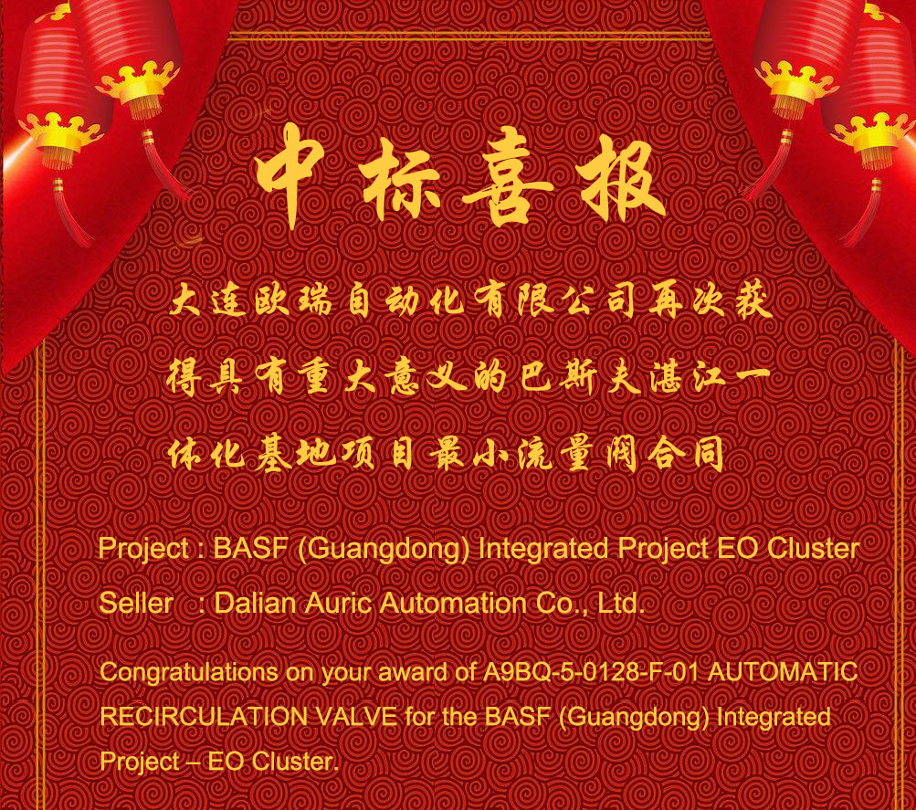 再次獲得巴斯夫湛江一體化基地項目泵保護閥合同