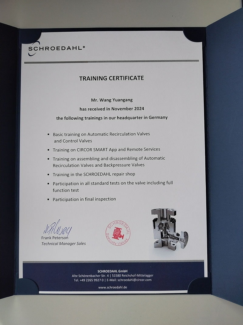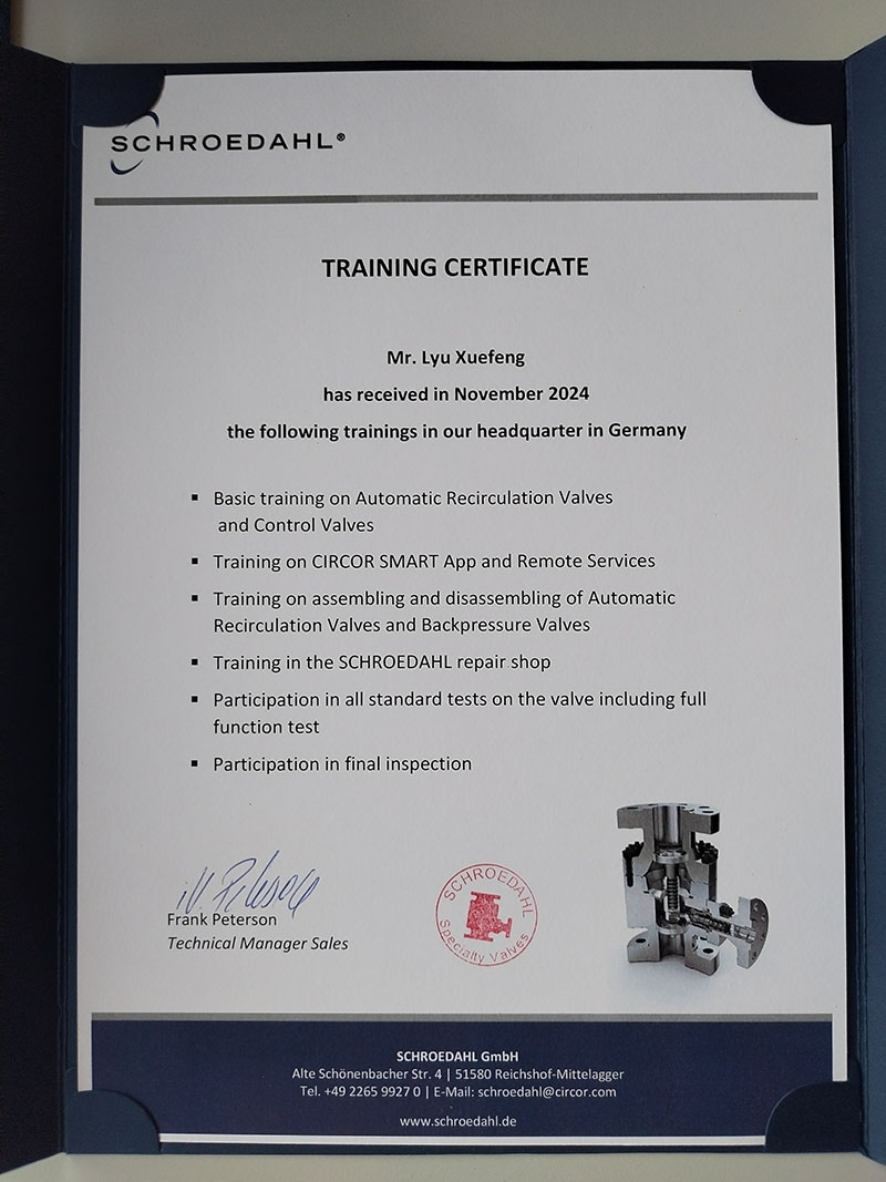 本公司巴斯夫湛江項目負責人在德國工廠參加閥門監(jiān)造,測試和技術培訓2024-11-18